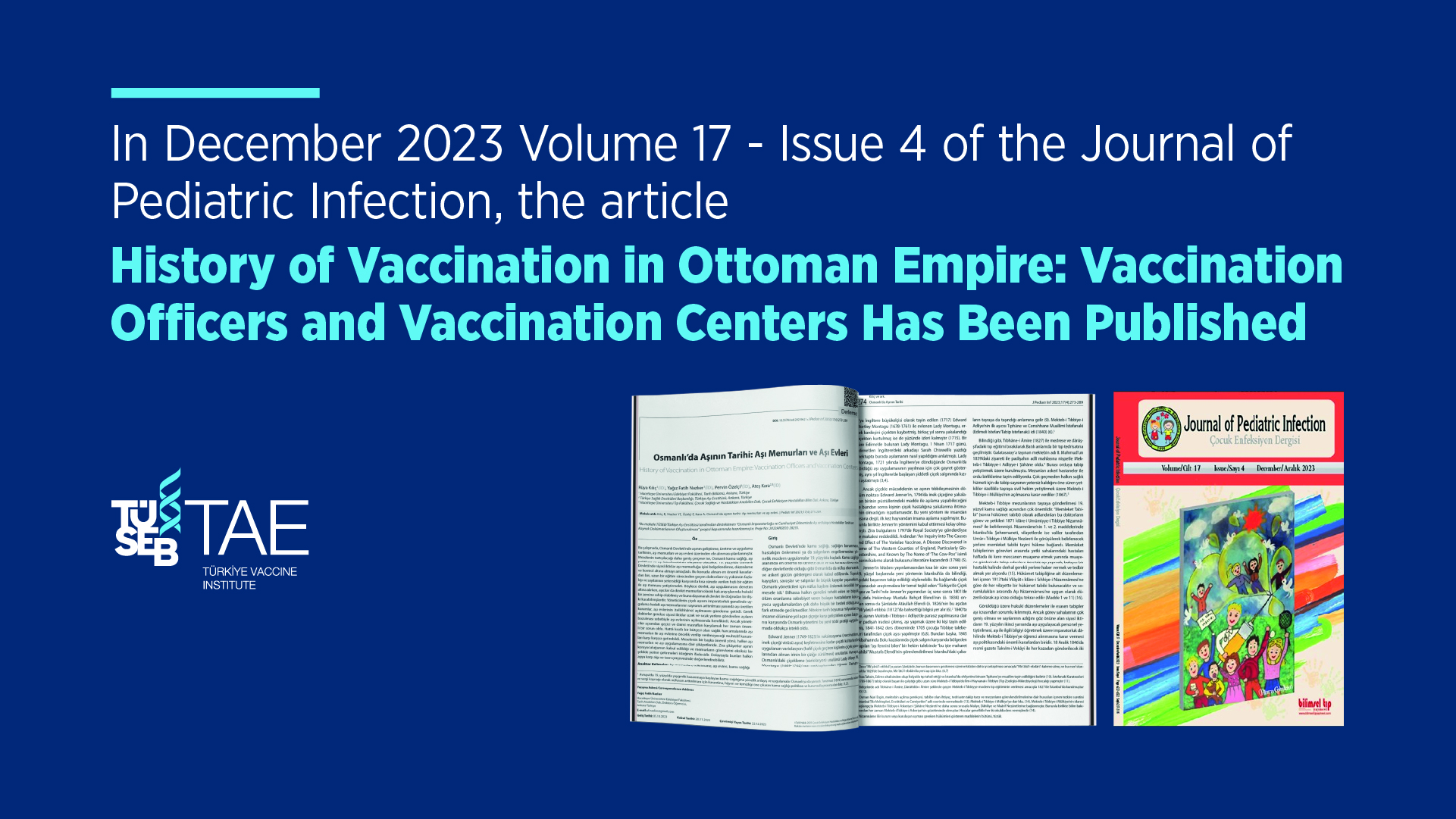 Within the scope of the project supported by the Health Institutes of Türkiye (TÜSEB) - Türkiye Vaccine Institute (TAE), titled ‘Establishment of Vaccine and Infectious Diseases History and Source Documents in The Ottoman Empire and Republican Period' in December 2023 Volume 17 - Issue 4 of the Journal of Pediatric Infection, the article ‘History of Vaccination in Ottoman Empire: Vaccination Officers and Vaccination Centers' has been published under the section 'Vaccines and Infectious Diseases History.'