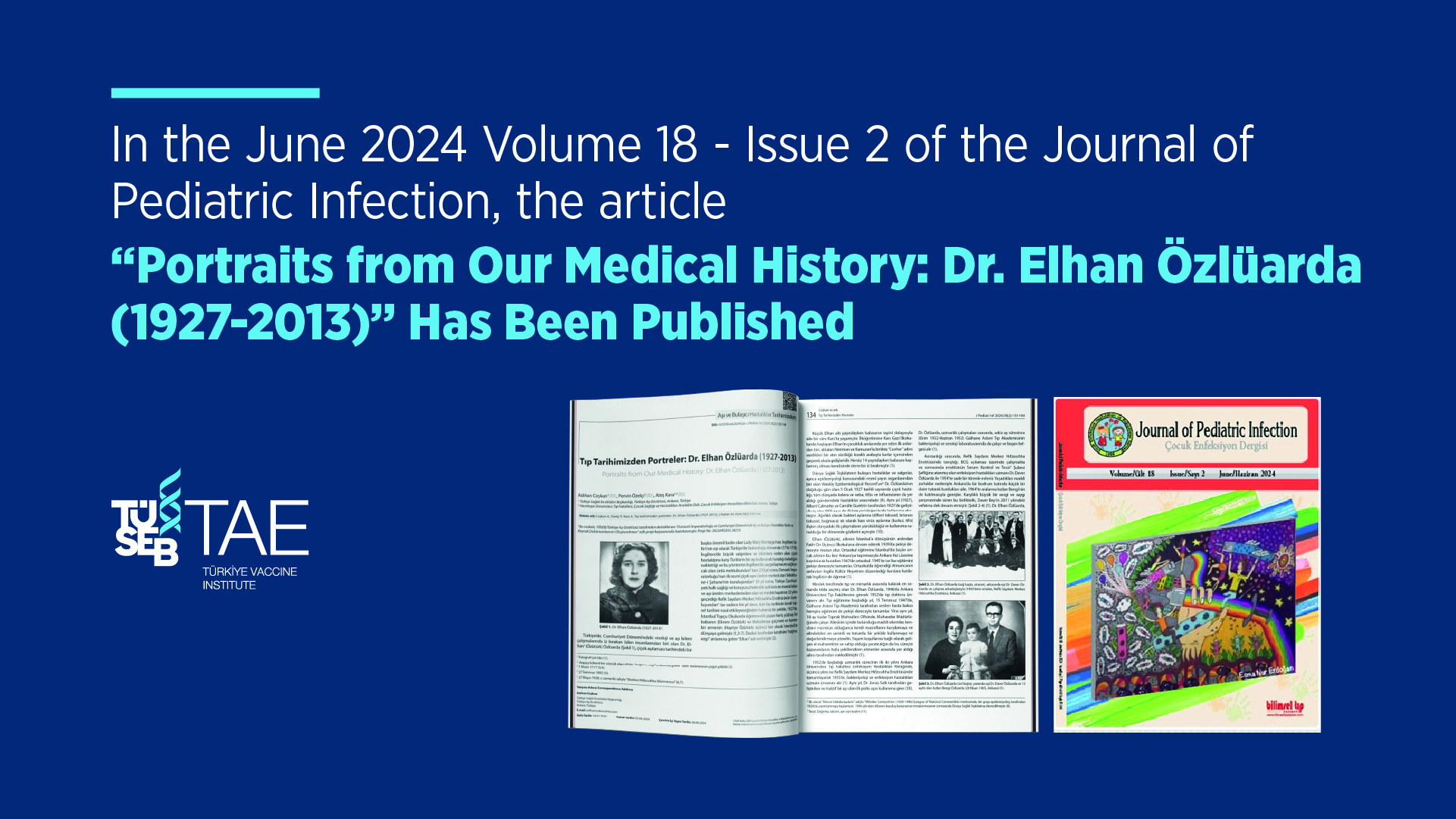 Within the scope of the project supported by the TÜSEB- Türkiye Vaccine Institute (TAE), titled ‘Establishment of Vaccine and Infectious Diseases History and Source Documents in The Ottoman Empire and Republican Period' in the June 2024 Volume 18- Issue 2 of the Journal of Pediatric Infection, the article Portraits from Our Medical History: Dr. Elhan Özlüarda (1927-2013)' has been published under the section 'Vaccines and Infectious Diseases History.'