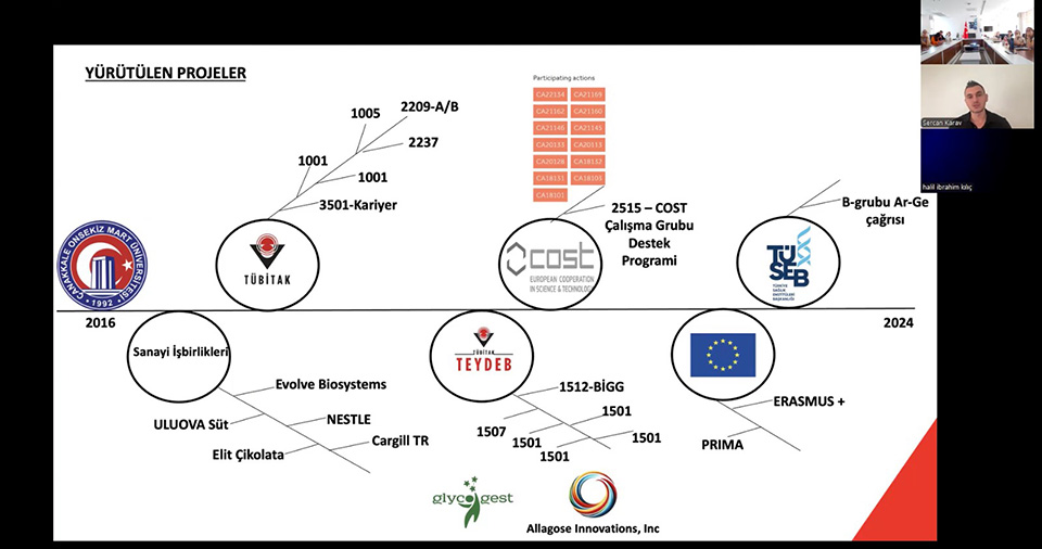 Türkiye Sağlık Enstitüleri Başkanlığı (TÜSEB) Türkiye Aşı Enstitüsünün (TAE) eğitim faaliyetleri kapsamında 15 Ağustos 2024 tarihinde “Anne Sütü Glikomlarının Sağlık ve Hastalıktaki Rolü” başlıklı sunum Çanakkale Onsekiz Mart Üniversitesi, Fen Fakültesi, Moleküler Biyoloji ve Genetik Bölümü öğretim üyesi Doç. Dr. Sercan Karav tarafından gerçekleştirilmiştir. Eğitim kapsamında anne sütünün önemi ve mikrobiyota ile ilişkisi, insan sütü oligosakkaritleri, Bifidobakterilerin glikanları kullanım mekanizmaları, anne sütünün sağlık ve hastalıktaki rolleri tartışılmıştır. Eğitim hocamızın çevrimiçi katılımıyla hibrit olarak TÜSEB-Aziz Sancar Araştırma Merkezinde gerçekleştirilmiştir.