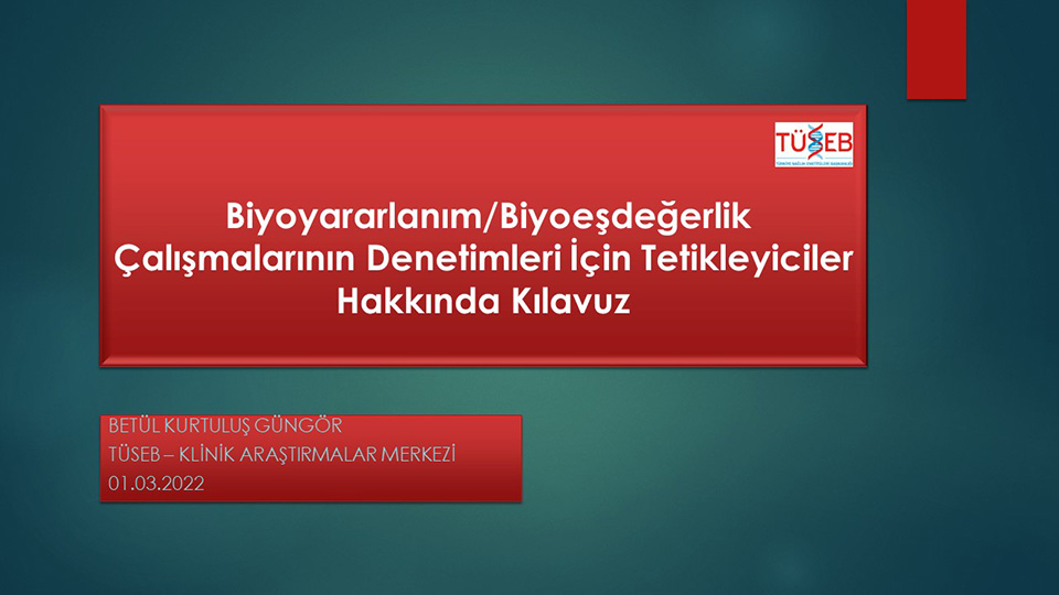 01.03.2022 tarihinde Betül KURTULUŞ GÜNGÖR’ün sunumuyla “Biyoyararlanım/Biyoeşdeğerlik Çalışmalarının Denetimleri İçin Tetikleyiciler Hakkında Kılavuz” ile ilgili birim içi eğitim yapılmıştır.