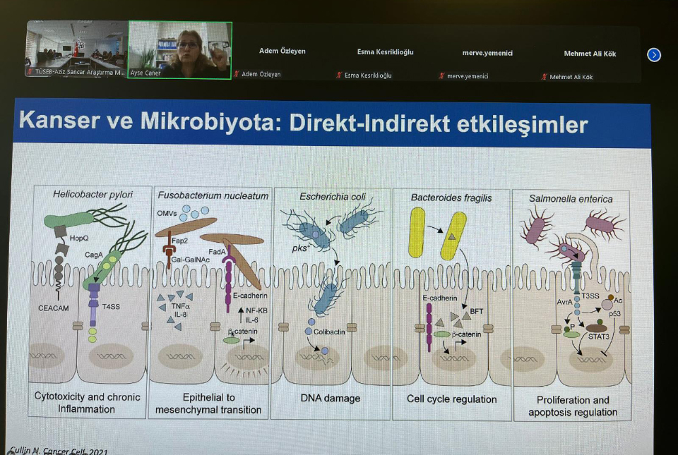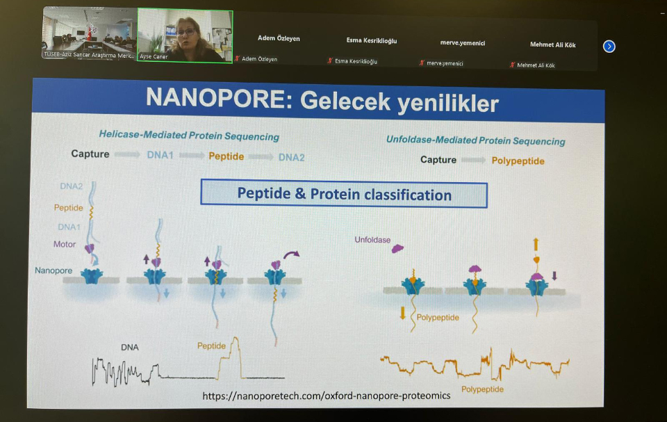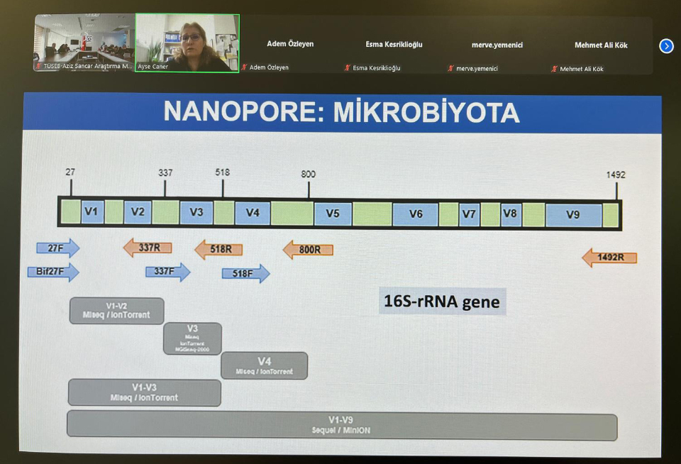 Söz konusu sunum, Ege Üniversitesi Tıp Fakültesi Parazitoloji Anabilim Dalı Öğretim Üyesi Prof. Dr. Ayşe CANER tarafından TÜSEB - Aziz Sancar Araştırma Merkezi'nde hibrit (çevrim içi ve yüz yüze) formatta gerçekleştirilmiş olup, Nanopore uzun okuma dizileme teknolojisinin bilimsel araştırmalardaki rolü ve uzun okuma yönteminin önemi, mikrobiyota ve kanser etkileşimi ile bu teknolojinin ilgili çalışmalardaki uygulama alanları detaylı bir şekilde ele alındı.