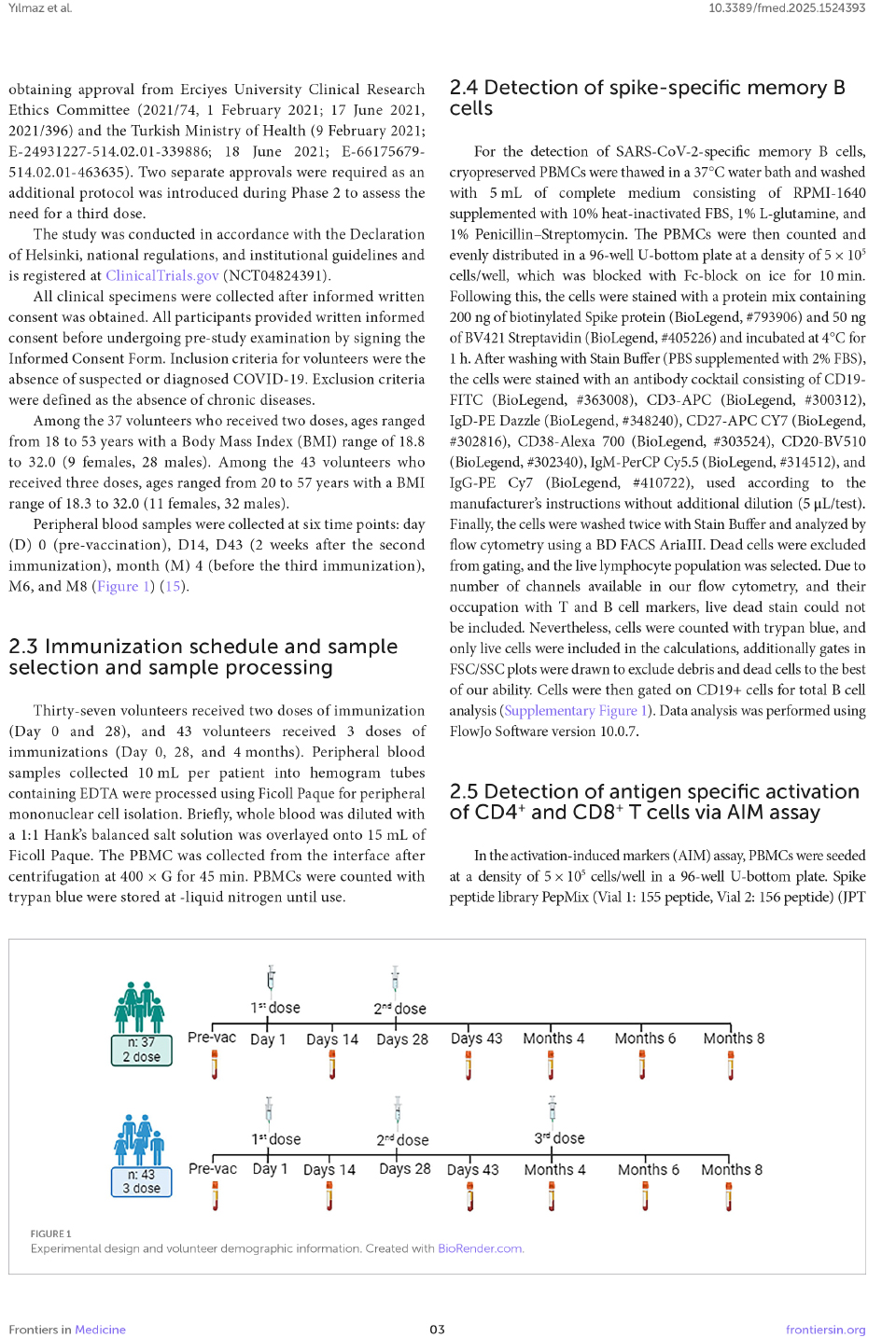 Makale atfı: Yılmaz, Eken, Sezer, Bağcı, Erdem, Sarıkaya, Kaplan, Inal, Bayram, Kalın Unuvar, Zararsız, Yerlitas, Cakir, Pavel, Uygut, Yetiskin, Kara and Ozdarendeli. Vaccination with inactivated SARS-CoV-2 vaccine TURKOVAC induces durable humoral and cellular immune responses up to 8 months Front. Med. 12:1524393. doi: 10.3389/fmed.2025.1524393